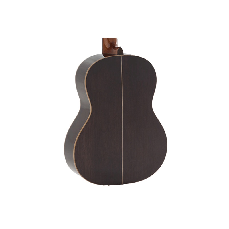 The African mahogany neck paired with a kabukalli fretboard ensures smooth action and comfort, while the ebony-maple-ebony body binding adds both strength and striking visual detail. In fact, the gold lyre design tuners not only hold pitch reliably but also enhance its luxurious appearance. Given that this model is made in Spain, it reflects a tradition of meticulous craftsmanship and classical guitar excellence.