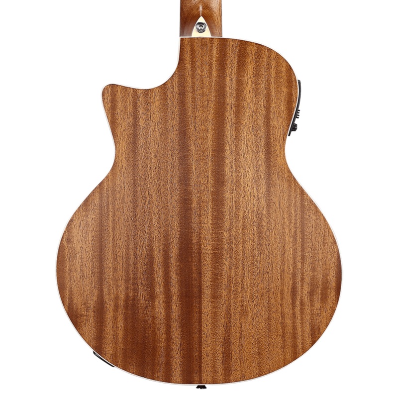 African Mahogany back and sides provide a focused, clear, and woody tonal response.