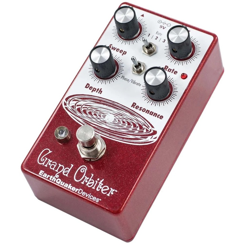 Grand Orbiter is a 4 stage OTA-based phaser with a diverse feature set that can go from stationary and resonant to slow and mellow and on through fast and swirly. It has three way toggle switch to select between the ranges of modulation. The master Rate control fine tunes the speed of the LFO in each of these modes and the flashing red LED acts as a visual indicator, even when the effect is in bypass mode. The Depth control blends the shifted signal in with the dry signal and controls the intensity of the effect. The Sweep control governs the peak frequency of the phased signals tone, turned full clockwise the sweep is lively and intense, whereas turning counter clockwise yields a darker, more laid back peak. The Resonance provides a wide range of control over regeneration and at higher settings adds a more pronounced and resonant tone. You can also use the Grand Orbiter as a true pitch vibrato with the Phase/Vibrato switch. When in Vibrato mode, the dry signal is removed and the Depth controls acts as a volume control. This pedal is 100% analog, true bypass and built by entirely by hand in beachy Akron, Ohio. MFSKU Grand Orbiter UPC 858933004332