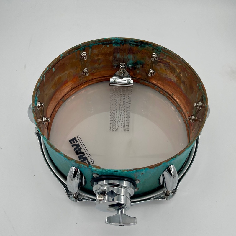 Lucky Drum Company 10″ L-Arm Mountable Side Snare in Lady Liberty Chemical Patina